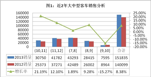 表2:2012-2013年大中型客车产品分长度规格销售量分析表