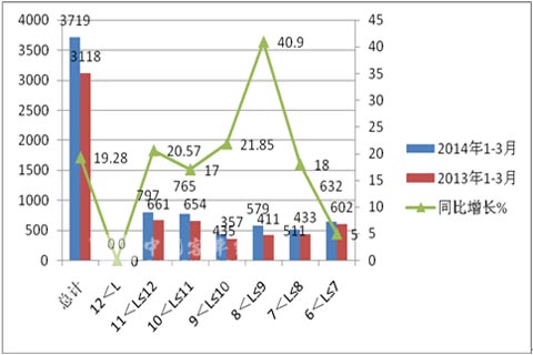 2、CNG公路客车在其相应的总销量中占据了近9.0%的市场比例,而2013年同期为7.9%,比例提高了近1.1个百分点,说明CNG有向公路客车市场渗透的迹象,但目前基数仍然较小。
