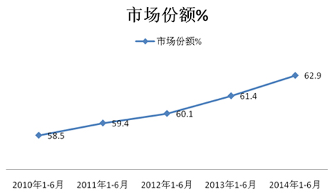三龙两通及青年、丰田考斯特等7家主流企业的旅游客车的市场占有率从2010年1-6月的58.5%逐年升高到2014年的62.9%,说明在客车行业旅游客车市场的客户一方面越来越注重品牌,另外一方面,旅游客车市场的垄断程度越来越高,而且有加大的发展态势,留给其他客车企业的旅游市场机会越来越少。出现上述现象的主要原因分析: