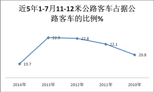 鉴于上述分析,解释了为什么2014年1-7月11-12米大型公路客车占据公路客车市场的比例消弱的现象了。