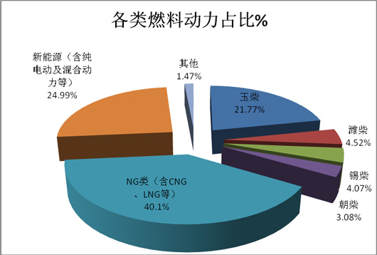 2、其次是玉柴发动机,权重达到21.77%,在传统燃料动力中仍然占据老大地位;再次是新能源客车,在公交市场中占据的份额已经接近四分之一,这在以前是从来没有过的,从此也可看出新能源公交客车的强劲发展态势。