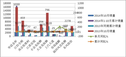 2、2014年10月及1-10月出口客车(含轻客)数据分析。