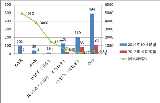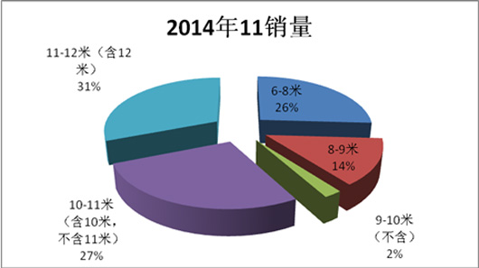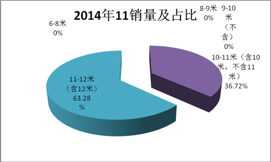 (一)2014年11月插电式混合动力客车按长度划分销量结构分析(来自上牌数据统计)---10-11米插电式混合动力客车车型相对增长最大