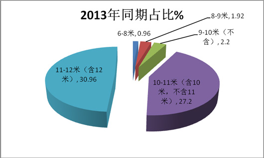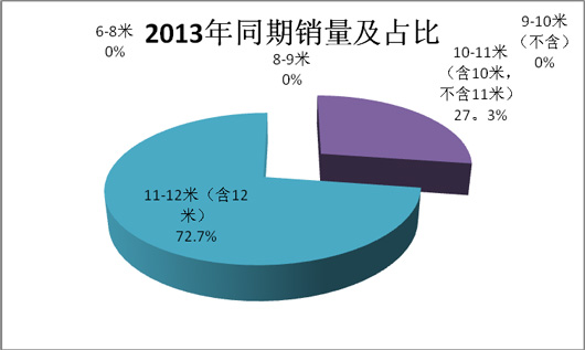 2、2014年11月10-11米插电式混合动力客车的销量比例为36.72%,11-12米的销量比例为63.28%;2013年同期的10-11米比例为27.3%,2014年11月10-11米比例提高了近9.42个百分点,而11-12米正好相反则下降了9.42个百分点。