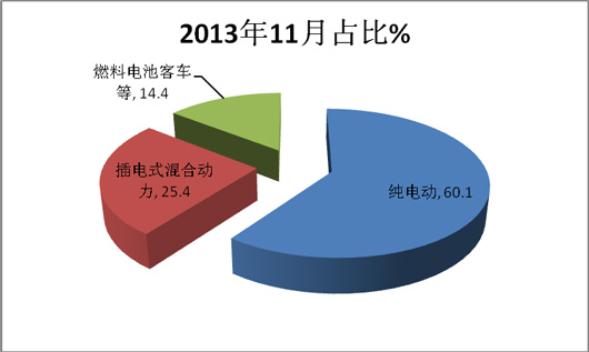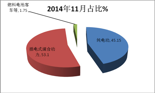 2、插电式混合动力客车2014年11月份占比相对2013年同期提高了27.7个百分点。