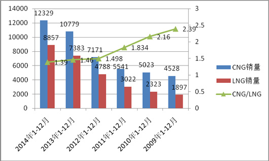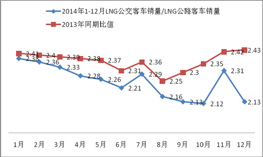 2014年1-12月LNG公交客车销量/LNG公路客车销量 |
