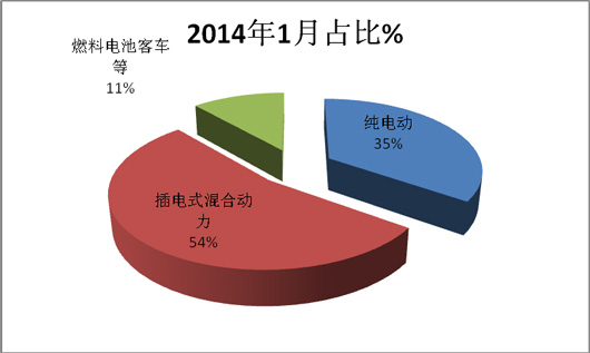 2、插电式混合动力客车2015年1月份占比相对2014年同期降低了近15个百分点。