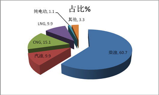 1、2015年1-4月,农村客运市场中销量最大的是柴油,其次为CNG、再次是汽油,第四是LNG,柴油仍然占据农村客运市场60%以上的市场份额,最大的不同是纯电动客车已经开始介入农村客运市场,而在2014年前4月为零。