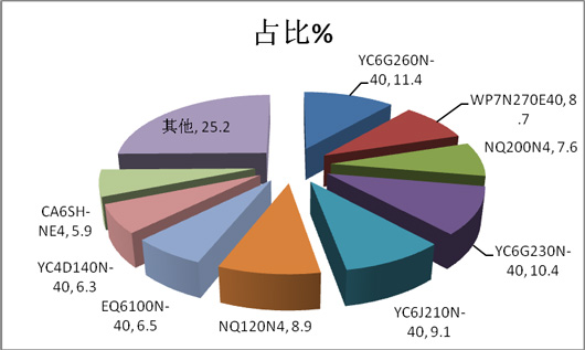 1、YC6G260N-40对应的销量比例最高,这主要是对应12米左右车型的CNG公交配置;
