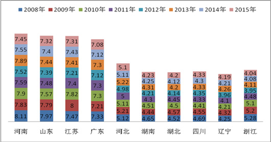三、近8年的1-5月,主流市场仍然是城乡公交的主要分布区域,但8年来的市场垄断总体呈现下降态势,其他非重点区域市场的市场机会在加大。城乡一体化发展战略使得中国农村经济发展的地区差异在逐步缩小。