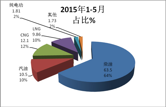 二、近8年来1-5月城乡公交客车销售数据比较分析—销量全面上升,占据公交市场份额逐年提高,但提高的速度在减弱,2015年1-5月同比增长3.2%。