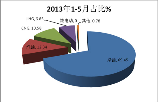 1、在6-8米城乡公交市场中,柴油占据了70%左右的市场份额,而且这种比例有逐年下降的趋势。
