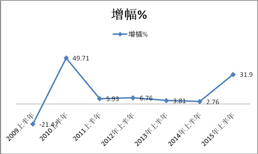 1、2015年上半年90万以上高档客车销量同比2014年增加31.9%,比2014年同期的增幅提高29.14个百分点,增幅明显加大,市场需求较好,增长明显强劲。