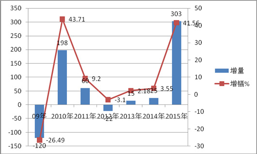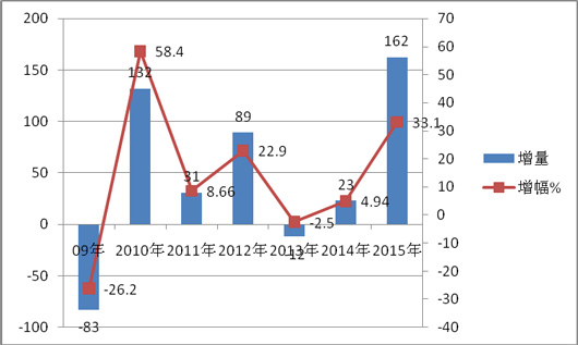 由表2和上图可以看出:从09年到2014,价格在90万以上的客车销量从接近的2431辆逐步发展到近3403辆的规模,09年由于金融危机的影响,高档客车销量不太理想,2010达到2889辆,2011年为3176辆,2012年为3332辆,2013年为3305辆,出现了小幅度下降,2014年又出现小幅度上升,从近几年的上半年情况来看,除了2009年是下降的外,其他同样是增长的,遵从了与相应的整体年份同样的规律,但增幅近几年是逐步收缩的,而到2015年却出现了超过30%的增速。