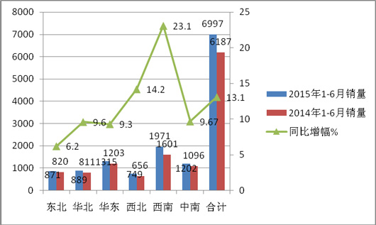 上图表中的东北区域具体包含:辽宁、吉林、黑龙江等区域市场;华北区域包含北京、河北、内蒙、山西等市场;华东区域包含:安徽、江苏、上海、浙江、福建、上海、江西等区域市场;