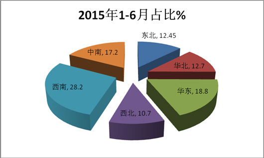 2015年1-6月全国六大区域市场CNG客车销量及市场份额%表: