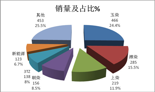 特点七、玉柴权重最大,同比下降幅度最大;新能源客车同比增幅最大--按发动机品牌及种类划分,2015年1-6月客车专用车销量结构分析