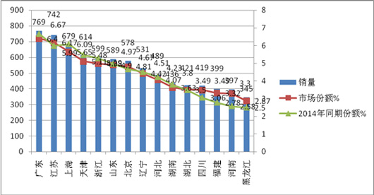 一、区域流向不平衡,前15名重点市场集中度同比提高0.5个百分点。团体车主要流向企业较多的区域市场,大城市11-12米车型较多,欠发达地区8-9米车型较多 表1