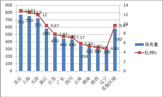 截止2015年1-6月,按区域划分,MPB保有量区域分布