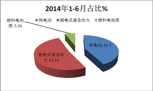 1、2015年1-6月份纯电动客车占比比2014年同期明显提高了(提高了近25.7个百分点)。