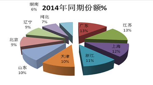 北京:30.77%,天津26.1%,河北25.86%,广东25.7%,广东24.17%、山东24.1%;湖南24.1%,江苏23.58%,上海和辽宁均22.2%。