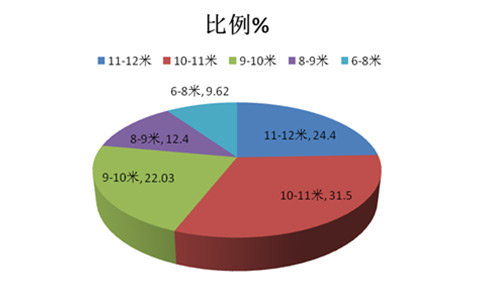 5、按长度段来分析,销量前10名区域市场10-11米团体客车销量最大,占据的比例为31.57%(2014年同期为31.5%),其次是11-12米长度,占据的比例为24.4%(2014年也为24.4%),再次是8-9米21(2014年同期为12.4%),第四是9-10米,其比例为12.4%(2014年同期为22.03),最小的是6-8米,占据的比例为9.98%(2014年同期为9.62%)。