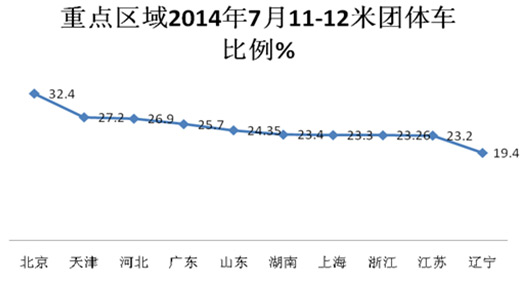 可见,北京地区是11-12米团体车型占据比例最高的地区