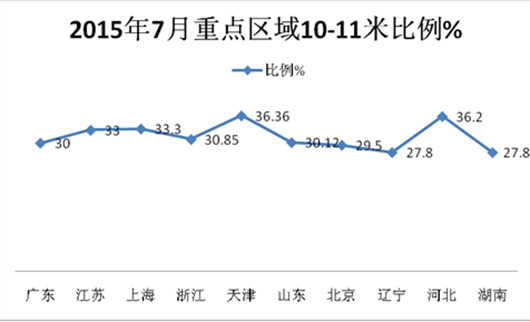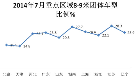 (3)2015年7月重点区域市场7月份8-9米团体车型占据的比例如下图: