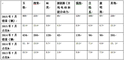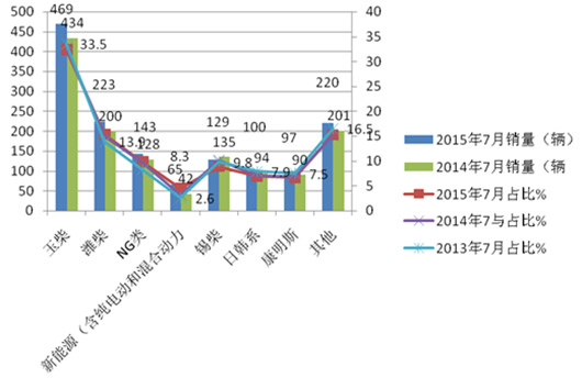 三、按动力种类划分,对2015年7月份团体客车市场分析
