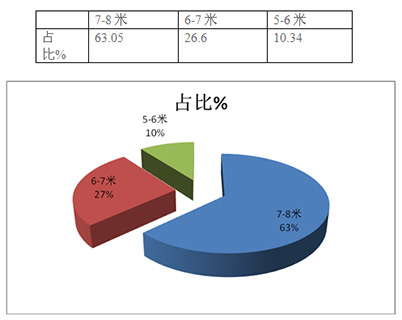 2、从近5年城乡公交销售的长度段来看,7-8米始终是城乡公交市场中需求的最大的主力车型,而且每年都在上升,占据了城乡公交市场近65%左右的市场比例;其次是6-7米车型,近5年1-8月需求量呈现不太稳定状态,但近3年增幅较大,且增幅呈现逐步趋缓态势;再次是5-6米车型,但近年的需求量呈现很不稳定的态势,振荡较大,无一定规律可循,但近2年销量呈现逐步增大态势。