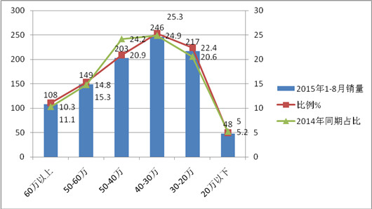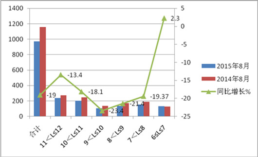 根据上牌数据,2015年8月按长度段划分LNG客车销量统计表