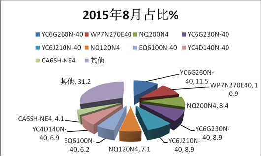 根据最新上牌数据查阅,2015年8月按发动机种类划分,LNG客车销量统计表