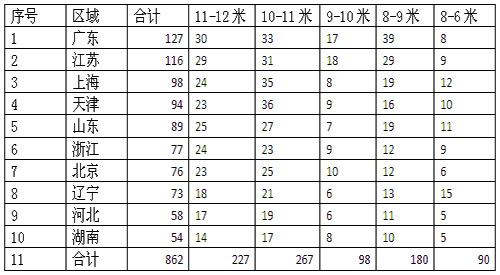 4、排在第4、5、6名的是华北最大团体客车市场的天津、山东、浙江。由此可见,在经济比较发达的区域,团体车市场可能相对就较大,这给客车企业在营销团体车市场的区域定位和营销资源的投入上提供了比较可靠的依据,同时天津区域是华北市场中最大的团体车市场,超过了首都北京的团体车市场。