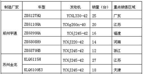 根据当前的部分区域销售市场调研,团体型客车在市场销售过程当中主要有郑州宇通、北汽福田、苏州金龙、厦门金龙、厦门金旅、中通客车、安凯客车、上海申龙等主流厂家参与竞争