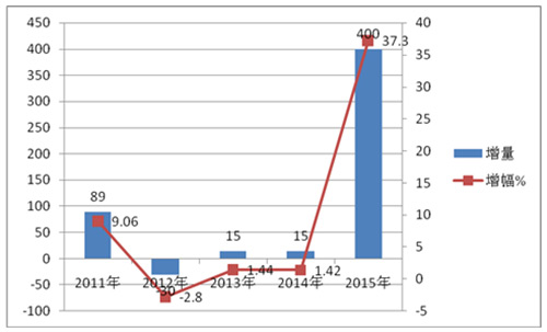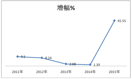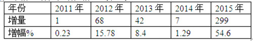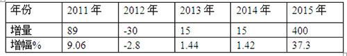 2011-2015年近5年来前三季度高档客车市场增幅%,表2