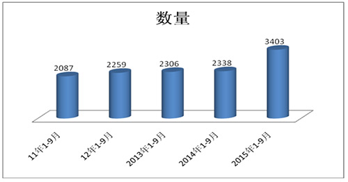 2、按价格区间划分统计2011年1-9月至2015年1-9月高档豪华客车销售数据(表4),单位:辆