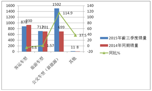 1、2015年前三季度,新能源客车增长是推动高档客车大幅度增长的最大动力。
