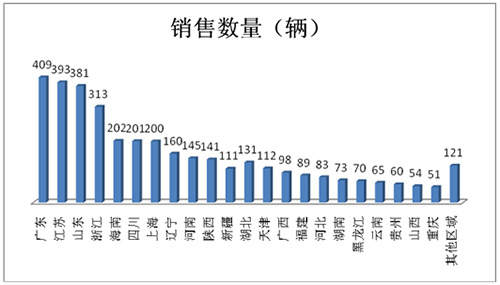 2015年1-9月小金龙考斯特共销售2344辆,同比增长1.1%,具体销量分布区域如下: