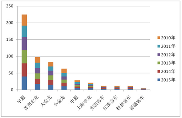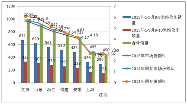 华东区域2015年前三季度8-10米座位客车市场剖析
