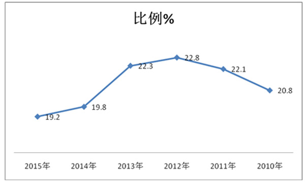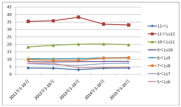 近6年前10月中,11-12米大型公路客车占据公路客车的市场比例从2010年的20.8%逐年升高到2012年的22.8%,然后又逐年降低到2015年的19.2%,而且降至近6年来最低点。