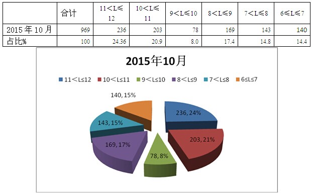 根据上牌数据,2015年10月按长度段划分LNG客车销量统计表