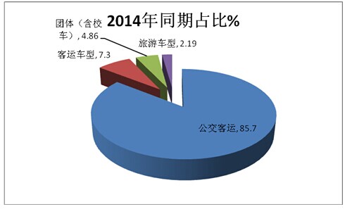 3、团体客车(含校车)市场的权重为5.4%,比2014年同期的4.86%上升了近0.54个百分点。