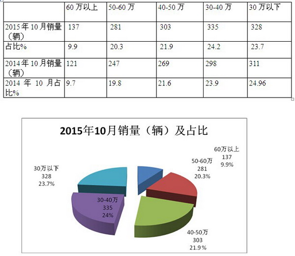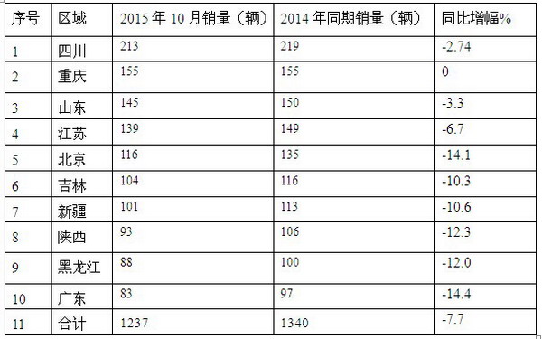 (以下数据是根据2015年10月各区域市场上牌数据的不完全统计计算得出)