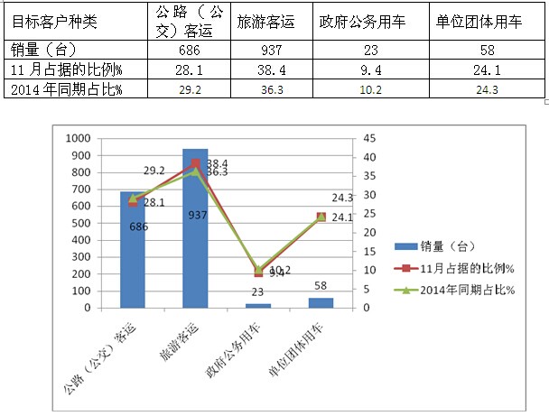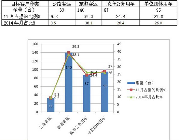 2、按目标客户群体划分分析2015年11月小金龙考斯特销量结构