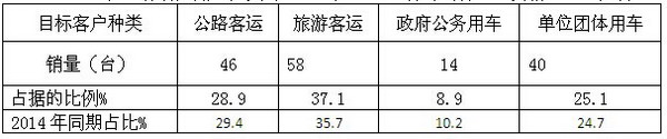 (二)、江铃考斯特:江铃考斯特2015年11月销量158台,同比增长13.67%,销售区域在广东、东北、江西、浙江等区域市场,目标客户群体主要是旅游客运和公路客运。