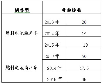 从上表可见,燃料电池客车在2015年的补贴额度也比2014年少了,而权重基本是有下降的。