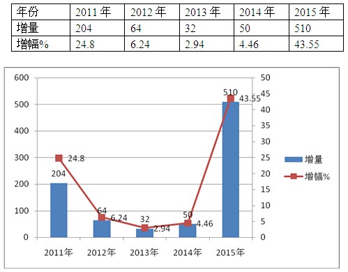 1)2011年1—12月份到2015年1-12月份,对价格在90万-150万之间的销售情况分析可知,此区间的客车销售每年份都呈现上升趋势,2015年同比销量增幅在5年中处于最大;近5年来价格在90-150万区间客车销量增长和增幅情况(表4)