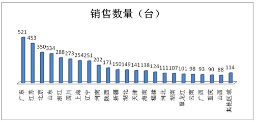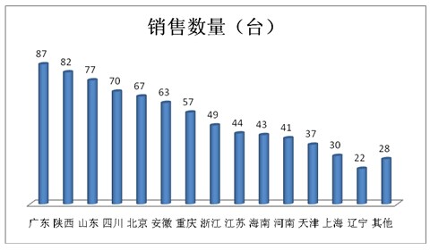2015年1-12月累计销售2883台,同比增长3.37%(2013年销量为2789台),广东、福建、浙江等是其重点区域市场。