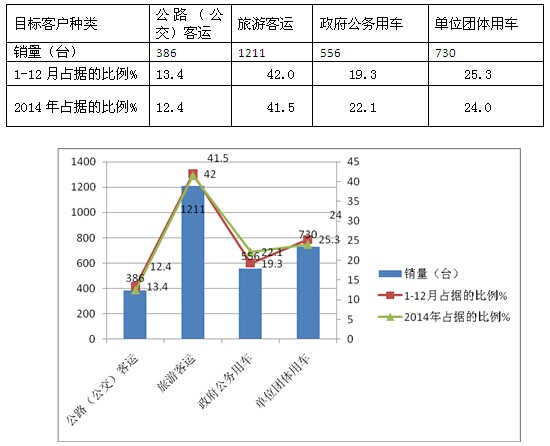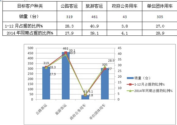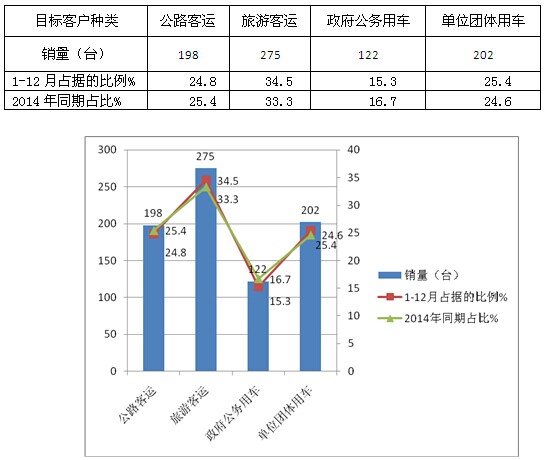 2、按目标客户群体分类对2015年1-12月丰田柯斯达的主要销量结构及环比分析