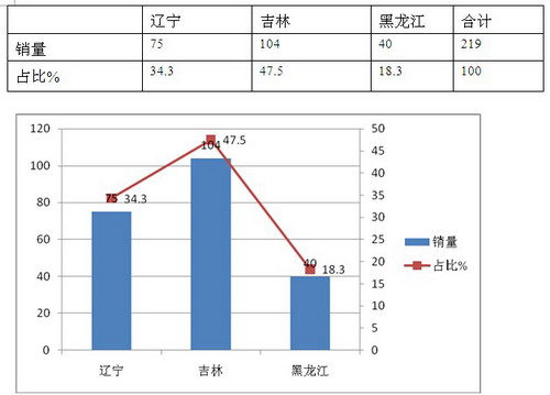 1、东北区域(含辽宁、吉林、黑龙江等市场)---吉林销量最多,属地企业一汽大连市场份额占有率最高,中型客车权重最大,达到38.8%